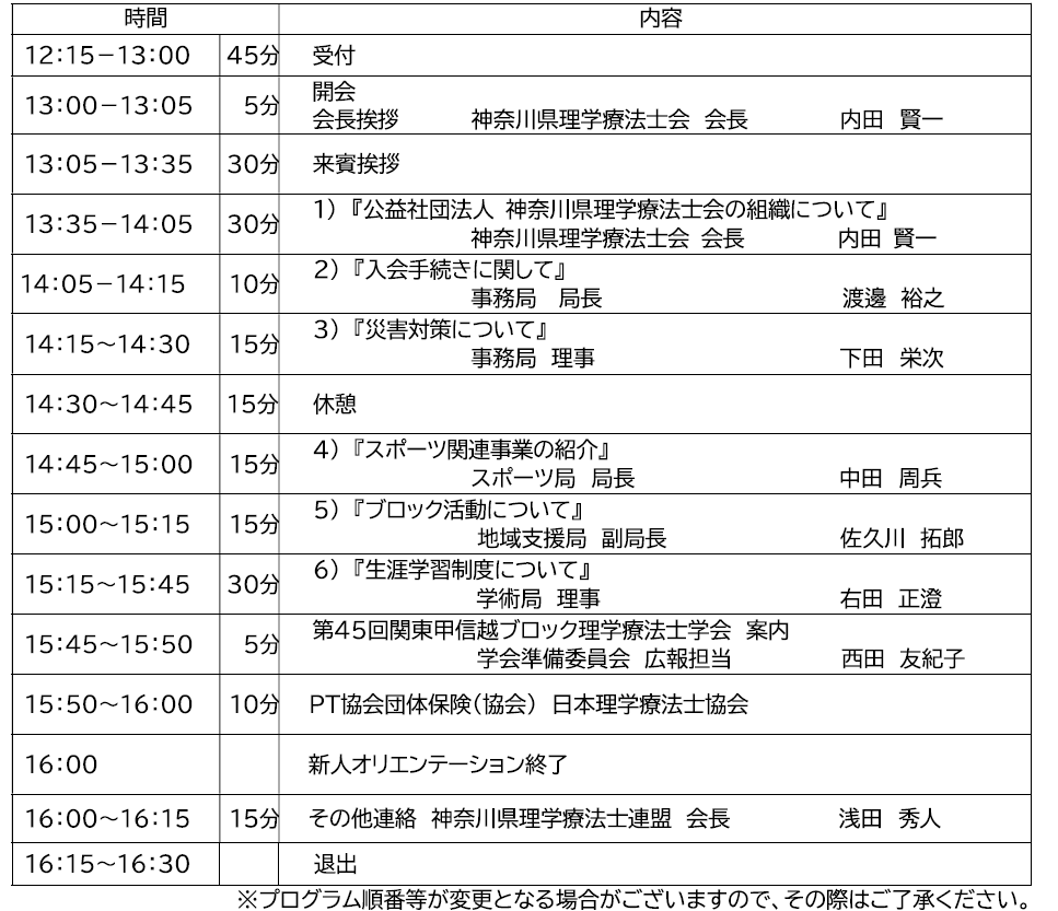 ○そ の 他 : 研修資料は神奈川県理学療法士会ホームページにて4月中旬頃掲載いたします。